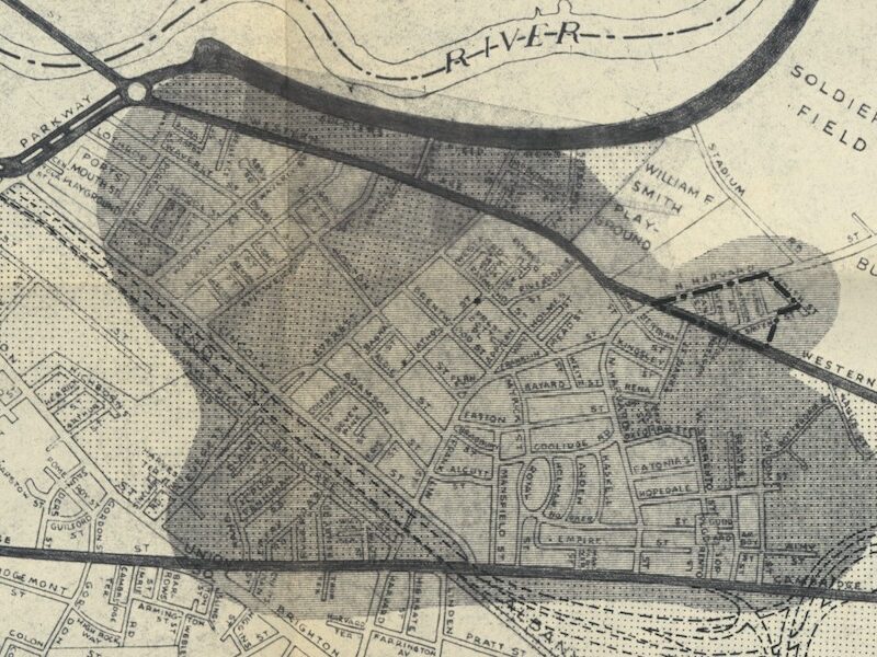 Annie Soricelli’s death notice ran in the Boston Globe on December 15, 1966. She has no obituary. The December 20 issue of the Globe lists a Secret Santa donation for $2 in her name. Soricelli’s name is written on the pentagon representing her former property on an old ward map that tiles the floor in front of the circulation desk in the Honan-Allston branch of the Boston Public Library on North Harvard Street. In the place where her sign decrying urban renewal once stood is a bus stop shelter with a perpetually overflowing trash can.