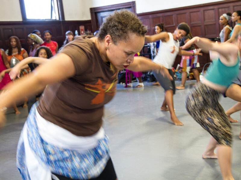 “What dance does is get words out of the way,” says DiMuro, the Dance Complex director, noting that nonverbal communication is especially prevalent in African classes, in part because of the explicit call and response portion. “You are communing on this human visceral level; there is no confusing the use of a word or translation or tone of something. What happens with dance in general, exemplified in African and in Haitian class, is there is communication through movement, which does so much more dimensionally to the way people communicate.
