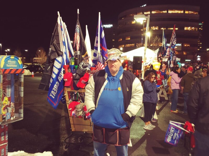 There’s history in these parts; for one, a former live-music dive that was the sight of one of the biggest meth busts in New Hampshire history was right down the street. It’s unclear if there were any underground pharma markets in the shadows, but for several hours Monday afternoon and evening, vendors cashed in, some pacing up and down Elm, others with enormous tents that offered pro-Trump memorabilia in smorgasbord-style.