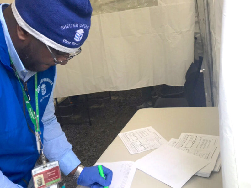 Efforts at the shelter to keep people safe were underway before the first case of COVID-19 was reported in late March. Mobile hand-washing stations were installed at the entrance of the shelter; people were screened for symptoms. As universal testing became available to the homeless population, gift cards from Dunkin’ were given as an incentive to encourage shelter guests to get tested.
