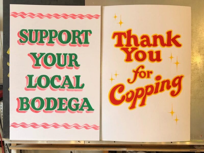 “For every small business that has had to pivot and make significant changes, there is a need to communicate these changes to their customers,” the artist says. “Because of this, the majority of the signs that I’ve been making reflect each place’s most important, basic messages. There’s a need to simply tell the customer how they can order or buy, and what they’re offering for the most part.”