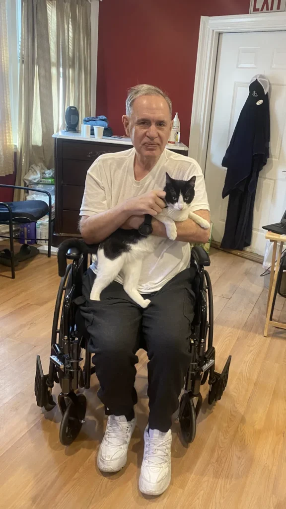 He said he’s befriended two cats living at the home. They’ve helped alleviate his anxiety. On her second visit to see her father in his new home, Verzi brought him some cat treats.