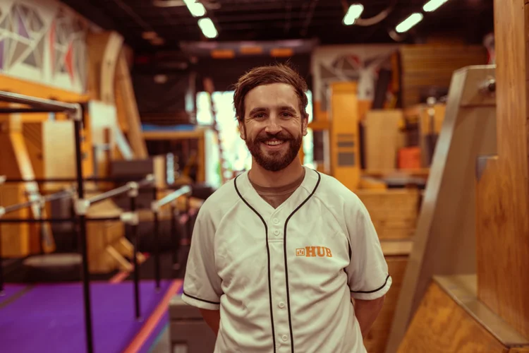 In 2008, Polin and his close friends formed Hub Freerunning. As a team, they devoted themselves to pushing their limits through flips, vaults, and daring jumps. But parkour is an unforgiving sport, often practiced on hard surfaces like concrete and metal. Without access to dedicated gyms, the team and practitioners alike turned to gymnastics facilities to safely learn new skills.
