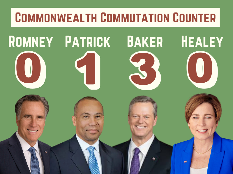 Since she took office in 2023, though, the current governor has not approved any petitions from the other arm of clemency—commutations, which are reductions in sentences. In comparison, Gov. Charlie Baker before her approved three commutations, an uptick from previous governors. And, according to the Boston Bar Association, from 2003 to 2007, Gov. Mitt Romney granted zero commutations from 2003 to 2007, while Gov. Deval Patrick granted one commutation, in 2015.