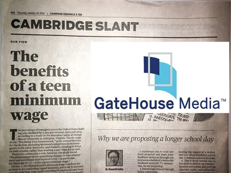 A couple of days back I picked up a Cambridge Chronicle newspaper at a takeout joint I frequent. Opened it up. Skimmed the top story, and the week’s arrests. Then moved on to the editorial. And was stopped cold upon seeing its headline, “The benefits of a teen minimum wage.” Which immediately set off alarm bells in my head.