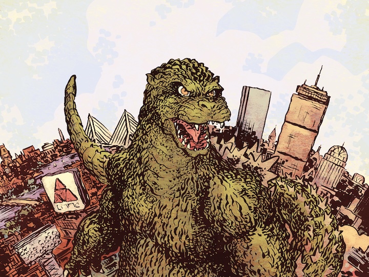 Boston is “such a big part of the identity of the country—so it was an easy choice for Godzilla’s tour of the nation. Plus, it’s home to some of the finest comic book artists on the planet.”