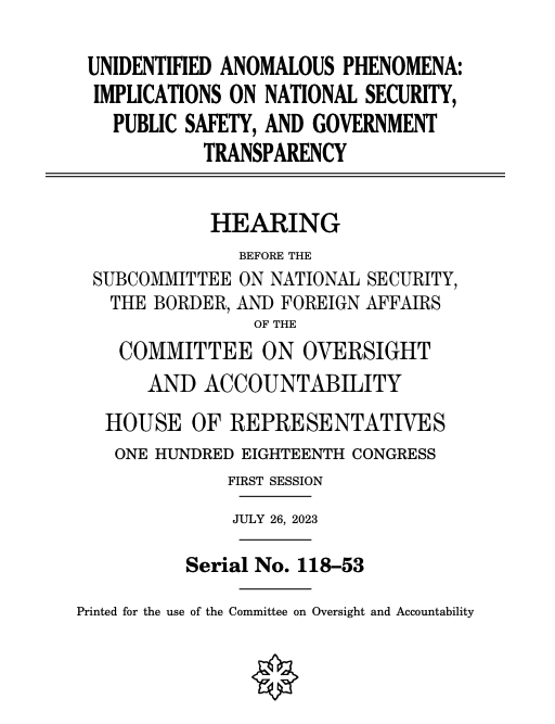 The aforementioned New York Times reporting, which has continued since the initial stories were published in 2017, was a dream come true for many who are interested in UAPs, as it gave mainstream credibility to the long stigmatized subject. The topic even caught the attention of members of Congress, and in July 2023 the House Oversight Subcommittee on National Security, the Border, and Foreign Affairs held a hearing on Unidentified Anomalous Phenomena and its implications on national security, public safety, and government transparency.