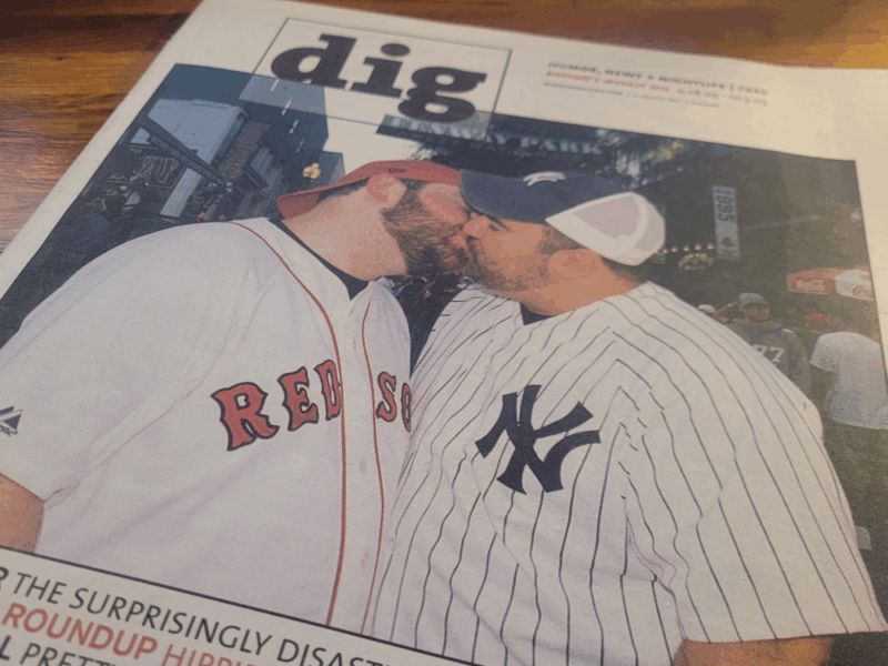 Holding up a legendary cover from October 2005 that features a guy in a Sox jersey kissing a dude in Yankees pinstripes, I realized that 20 years have passed since I was an intern at the Dig, the Boston alternative newspaper also known under a few other names that I wound up co-publishing until it shuttered two years ago.