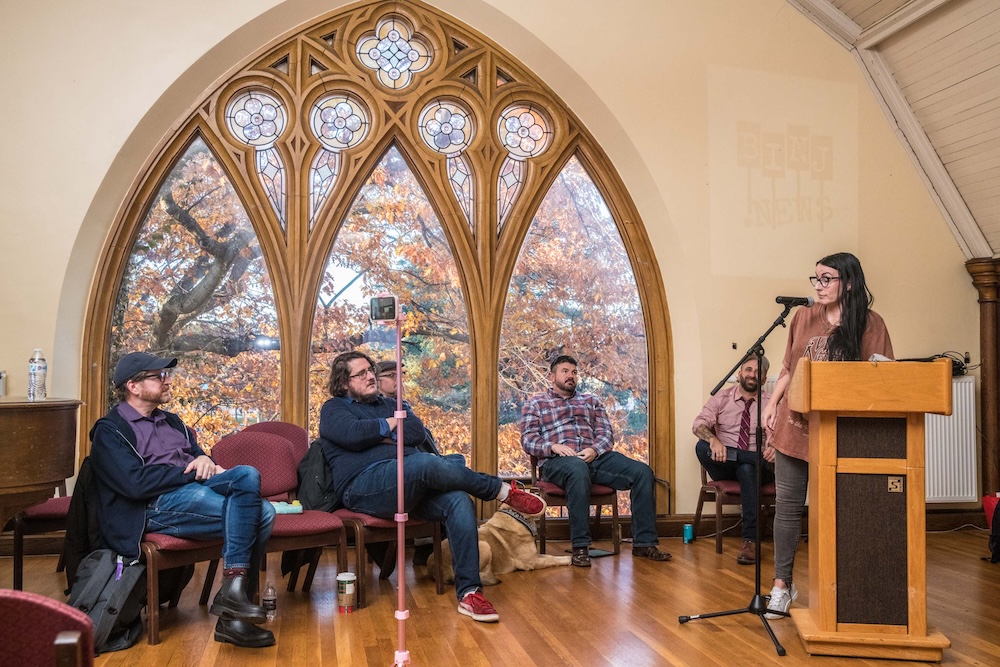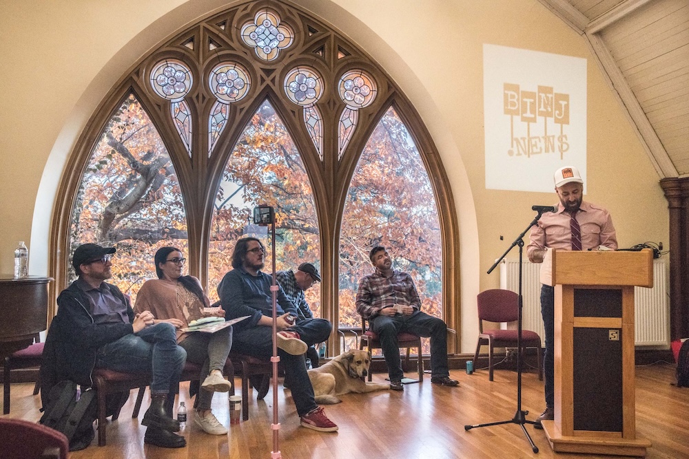 Thanks to all of the comedians and authors who gave their time and helped make this event happen: Tommy O’Deed, Rhodes Pierre, Derick Freire, Tim Champa, Nick Zaino, Cher Lynn, Dennis Maler, Luke O’Neil, and Eoin Higgins (watch Nick Zaino’s insightful short history of the relationship between comedy and journalism here). And also endless appreciation for those who joined us, purchased tickets, and in turn contributed to help BINJ keep producing fearless independent journalism—while still having a laugh every once in a while.