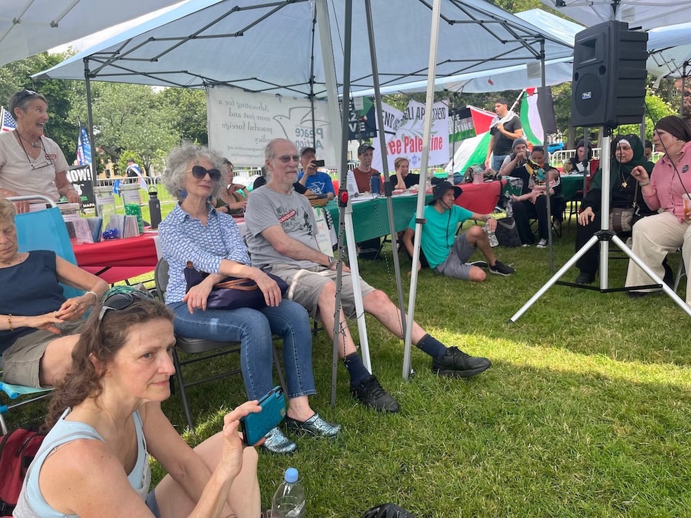 Organized by grassroots groups including North Shore for Palestine, Massachusetts Peace Action, and Jewish Voice for Peace, the two-day “Community Encampment for Palestine” in June 2024 was part of a series of peaceful overnight protests that took place across Massachusetts last summer.